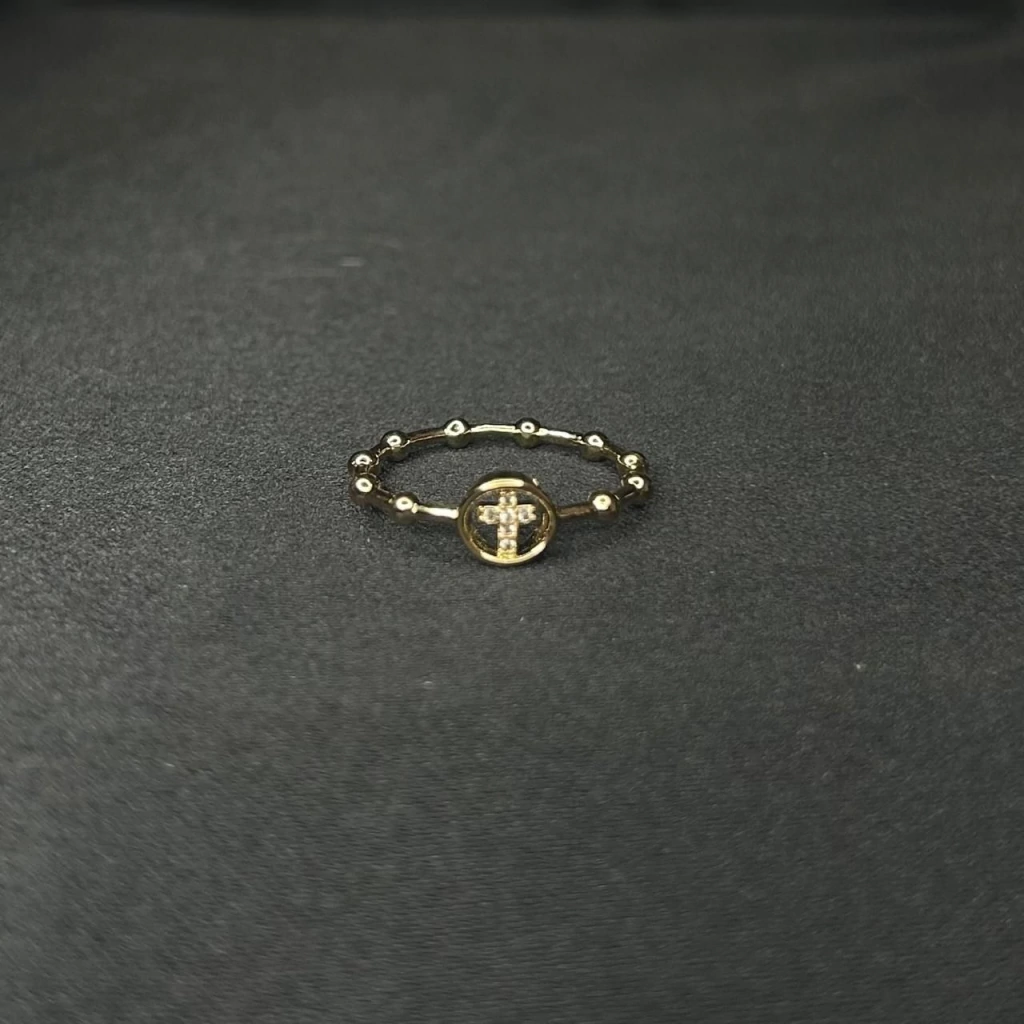 Anel Folheado a Ouro Bolinha c/Cruz Central Cravejada
