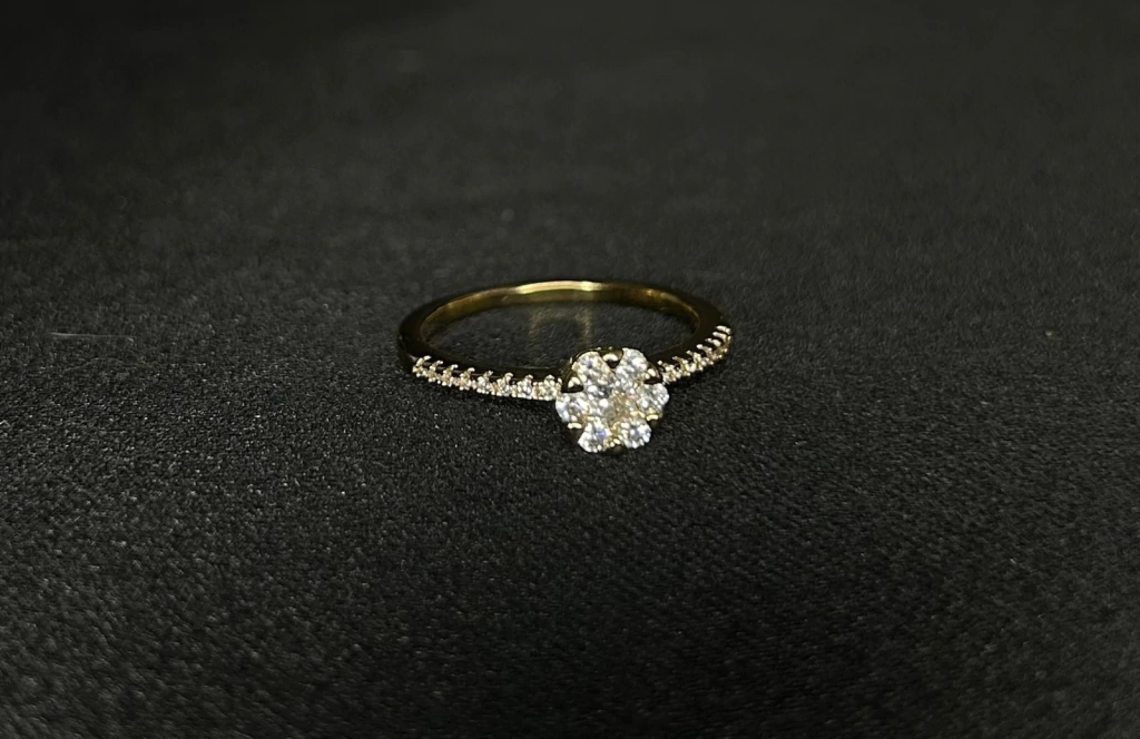 Anel Folheado a Ouro Solitário Cravejado Rosa